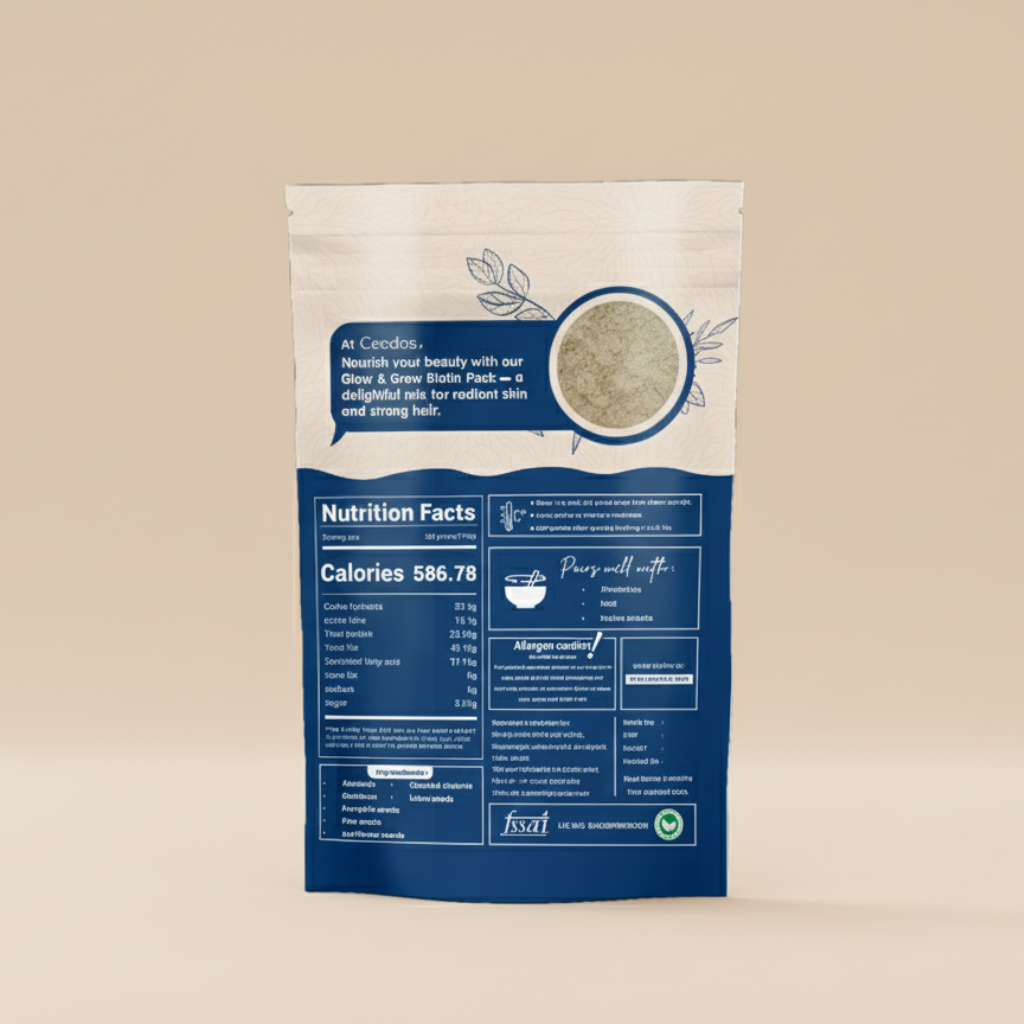 Ceedos Glow & Grow Biotin Health Mix is a carefully crafted nuts and seeds nutrition powder designed to support hair growth, skin health, and gut wellness naturally. Made using high-quality ingredients and traditional roasting methods, this mix is 100% sugar-free, grain-free, and free from artificial additives.
