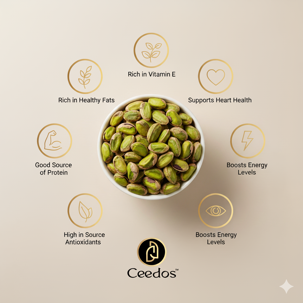 You want pistachios that taste the way they should—clean, fresh, and gently sweet. Ceedos Plain Pista brings that satisfying snap, bright green colour, and a rich, nutty aroma. They’re easy to snack on, and just as happy in pesto, biryani, salads, and bakes. Every handful delivers plant protein and good fats, so you feel nourished, not weighed down. Keep a pack in your desk drawer or pantry and upgrade everything from weekday lunches to weekend grazing boards. Ready to enjoy? Add your size and make them your go-to healthy snack.